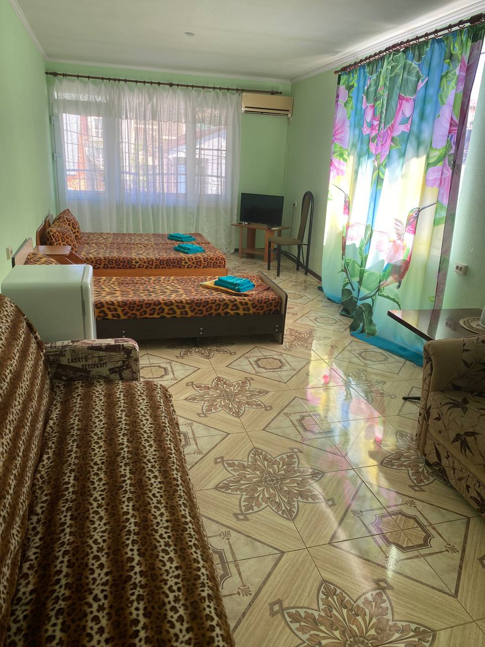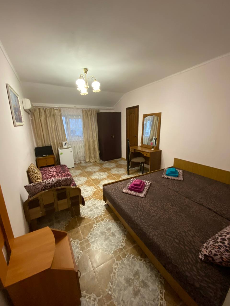 Размещение: 2-3-х местные номера с удобствами. В номере: мебель, санузел, телевизор, холодильник, кондиционер.